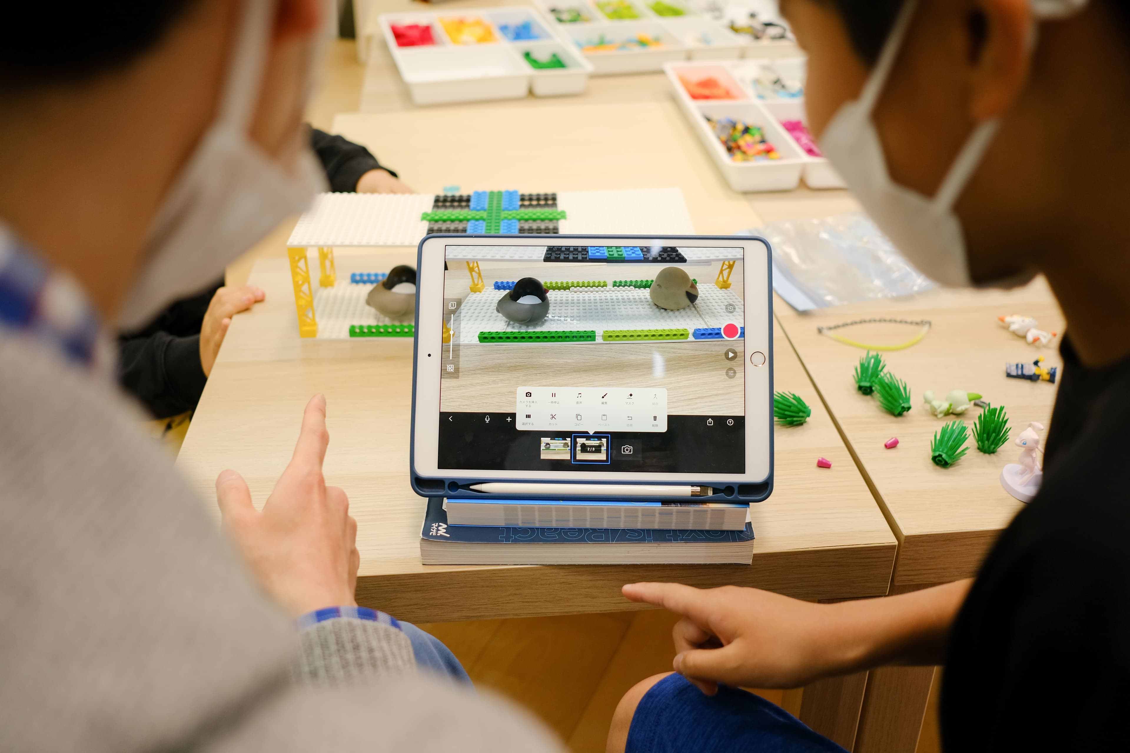 まず、子どもたちにストップモーションの仕組みや撮影方法を説明し、どんなストーリーやキャラクターを作りたいかを考えてもらいました。