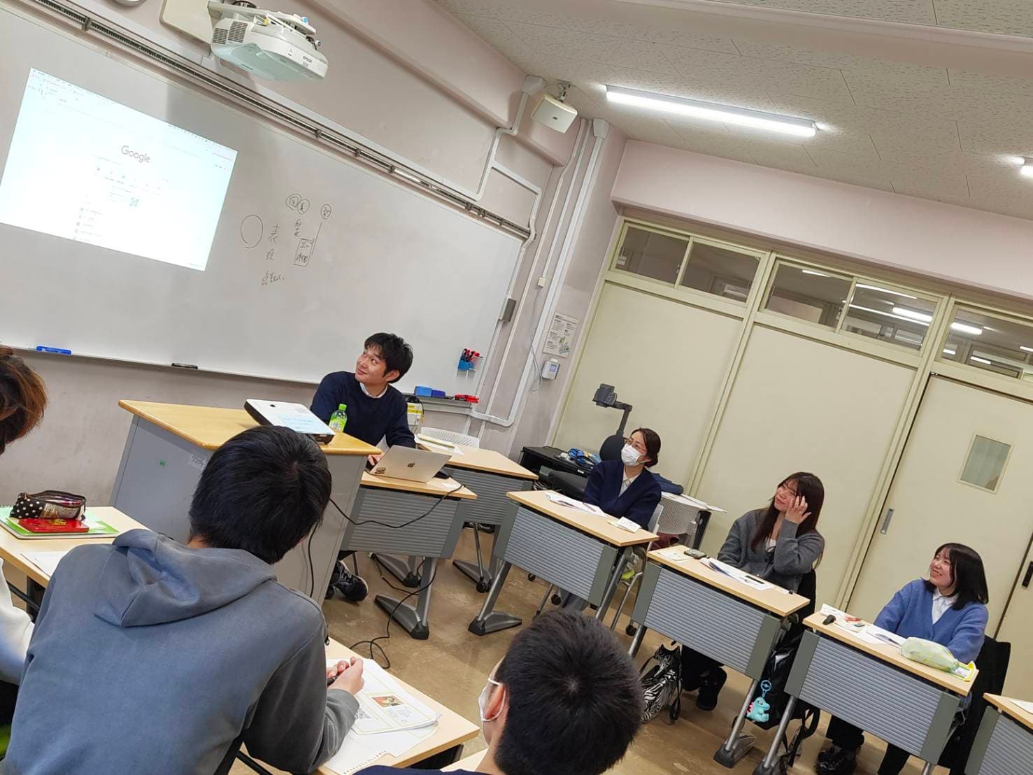 当日は「スクールソーシャルワーク論」の授業にて大学2年性の生徒さんたちの前で学校内フリースクールの取り組みの実績をベースにお話させていただきました。